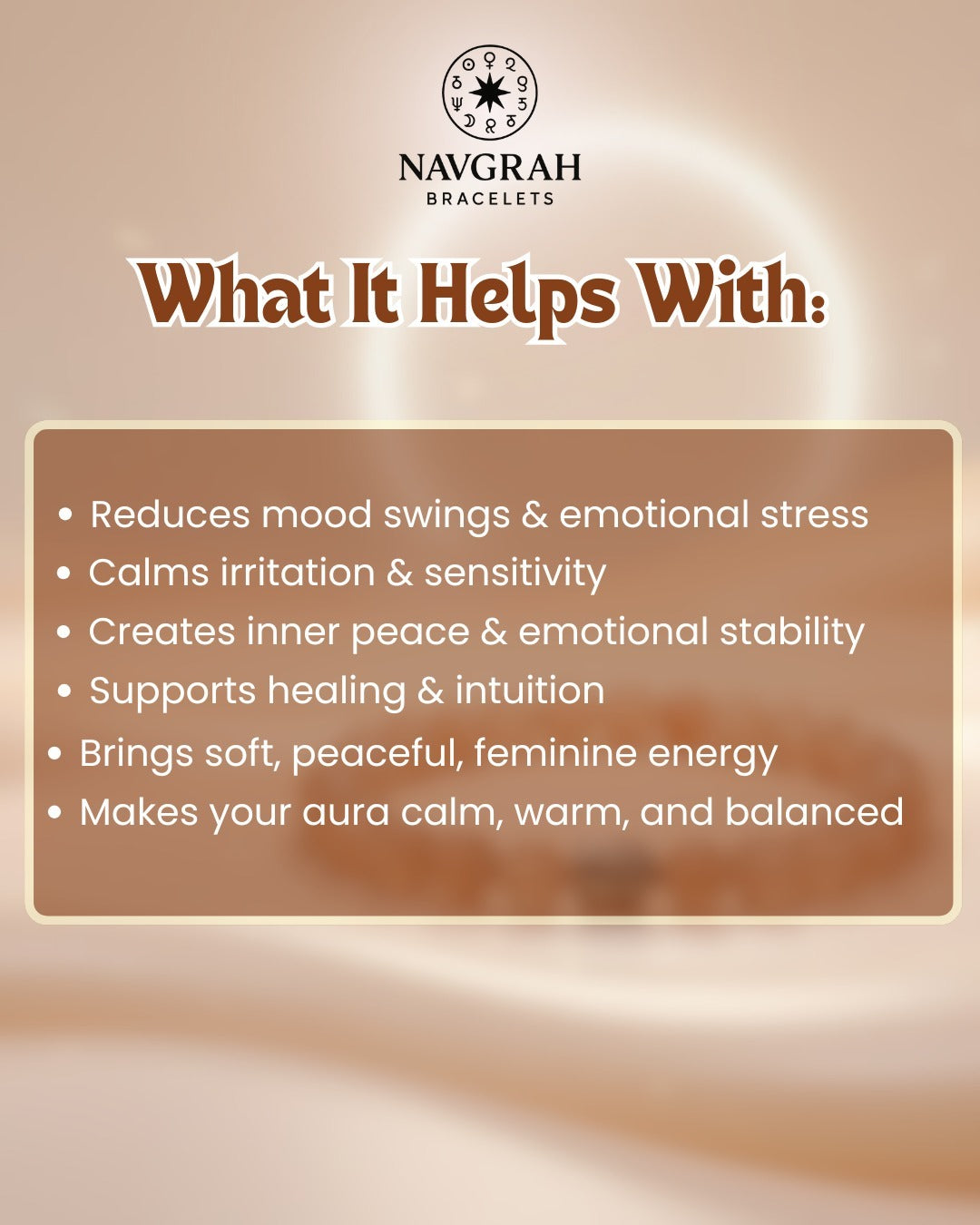 According to Shastras, Moonstone strengthens Chandra energy, which controls mood, peace, emotional balance, and intuition. When Chandra is weak, people experience mood swings, stress, anxiety, or emotional sensitivity.